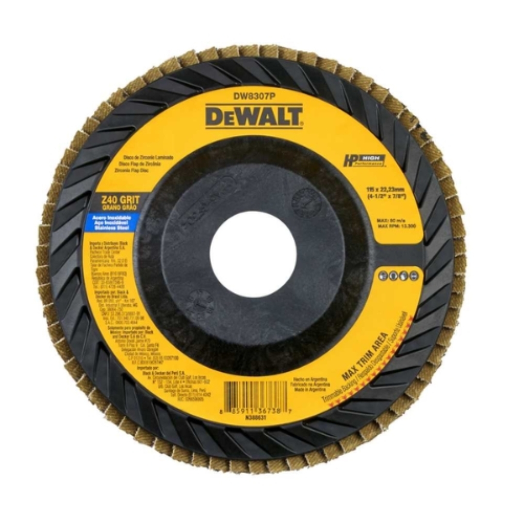 DISCO LIXA FLAP 4.1/2″ GR.040 RETO COST.NYLON DW8307P-AR DEWALT – 11889