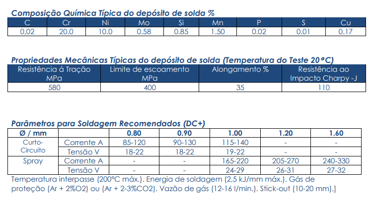 Arame sólido continuo inoxidável com aspecto brilhante, superfície ultra limpa, com bobinamento capa-a-capa em carretel aramado Embalagem padrão: 15 kg. Com baixo teor de Carbono, para a soldagem de juntas de aços de composição similar. É indicado para a união e revestimento de componentes químicos e vasos de construção para trabalhos com temperaturas de -196 ºC até 400 ºC.