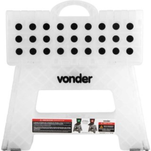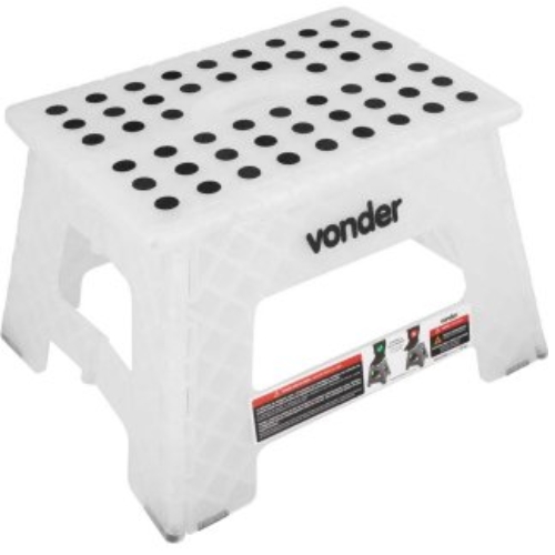 Antiderrapante, dobrável e com alça para transporte (fechada). Estrutura reforçada e com encaixes com parafusos de reforço.