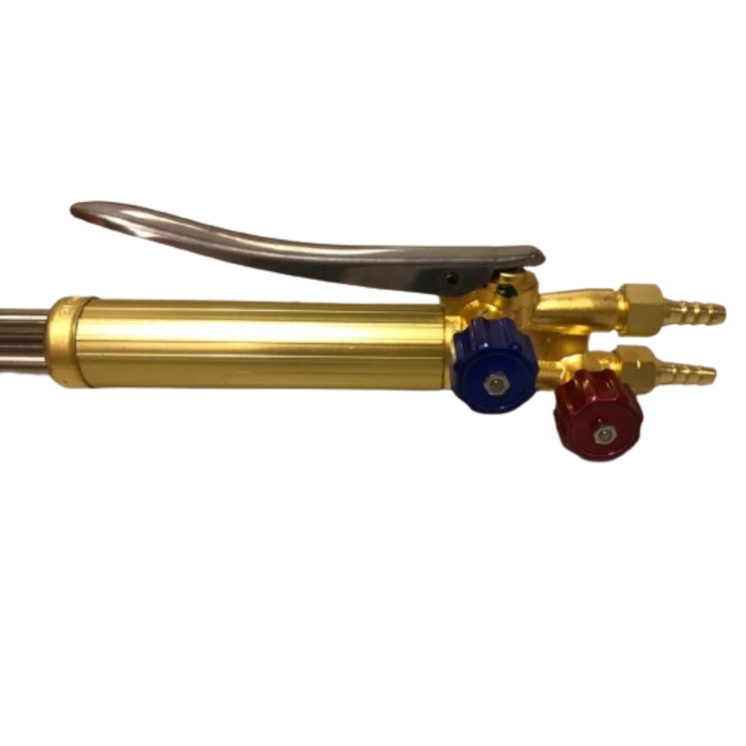 O Maçarico de Corte é utilizado para trabalhos leves e médios em chapas e perfis com até 300 mm de espessura. Seu peso aproximado: 1,20Kg. Corpo traseiro e cabeça em latão forjado proporcionando uma maior resistência ao calor, tubos condutores dos gases em aço inoxidável e em posição triangular para maior resistência e estabilidade. No Maçarico de Corte, a alavanca do jato de corte é estampada em aço inoxidável para maior durabilidade.